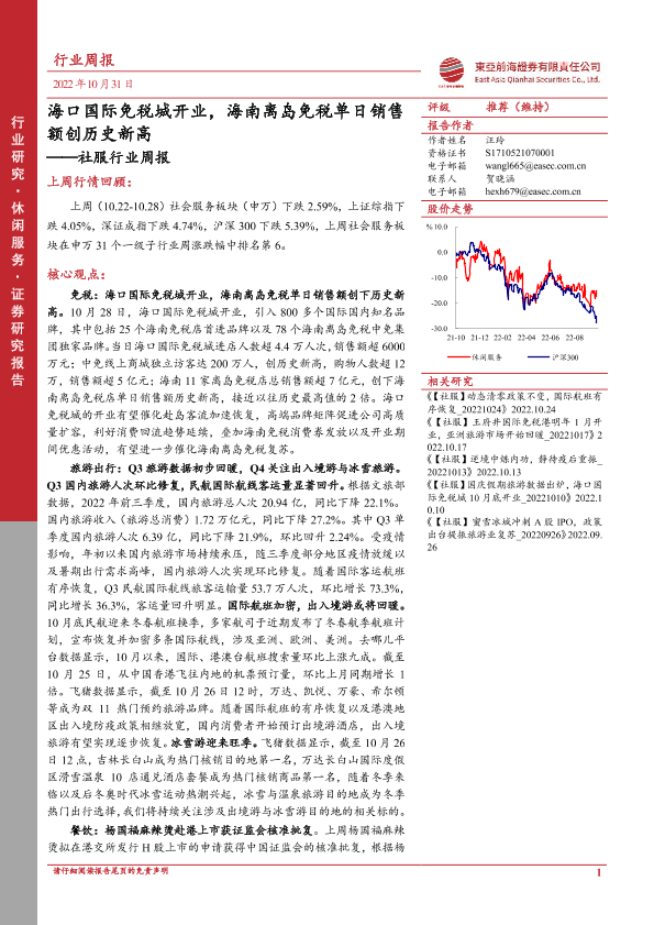 【东亚前海证券】【20221031】海口国际免税城开业,海南离岛免税单日销售额创历史新高-22页