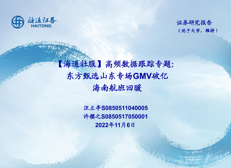 【海通证券】【20221106】高频数据跟踪专题:东方甄选山东专场GMV破亿 海南航班回暖-23页