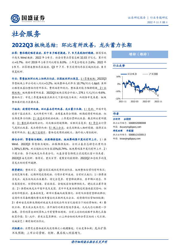 【国盛证券】【20221108】2022Q3板块总结:环比有所改善,龙头蓄力长期-25页