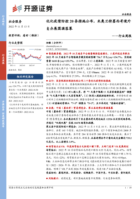 【开源证券】【20221113】社会服务行业周报:优化疫情防控20条措施公布,米奥兰特墨西哥境外自办展圆满落幕-19页