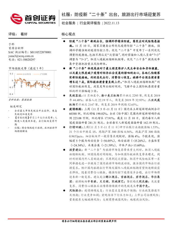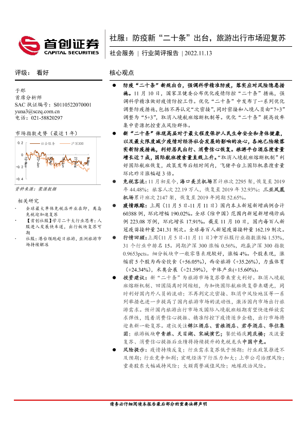【首创证券】【20221113】社服:防疫新“二十条”出台,旅游出行市场迎复苏-12页