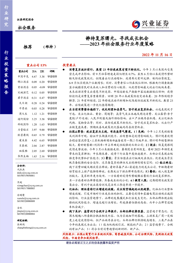 【兴业证券】【20221116】2023年社会服务行业年度策略:静待复苏曙光,寻找成长机会-34页