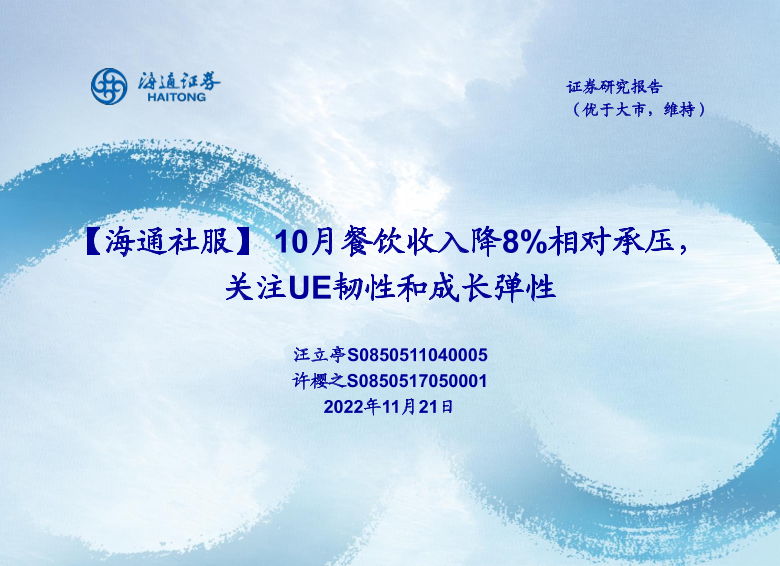 【海通证券】【20221121】10月餐饮收入降8%相对承压,关注UE韧性和成长弹性-18页