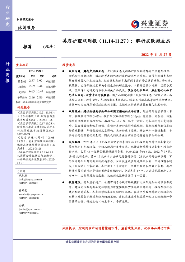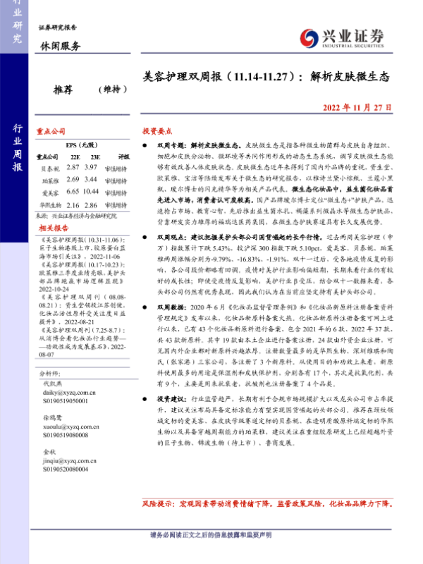 【兴业证券】【20221127】美容护理双周报:解析皮肤微生态-14页