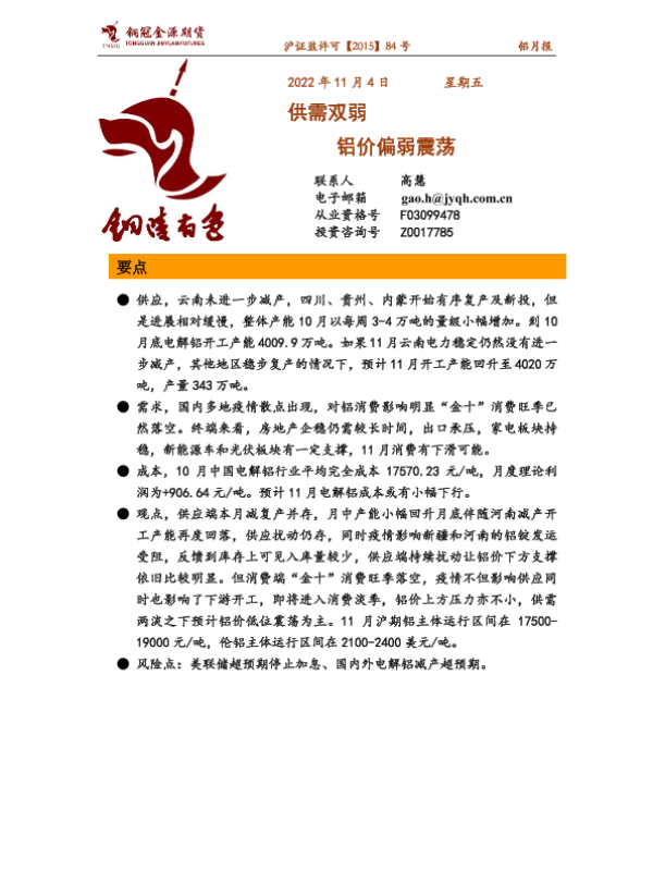 【铜冠金源期货】【20221104】铝月报:供需双弱,铝价偏弱震荡-19页
