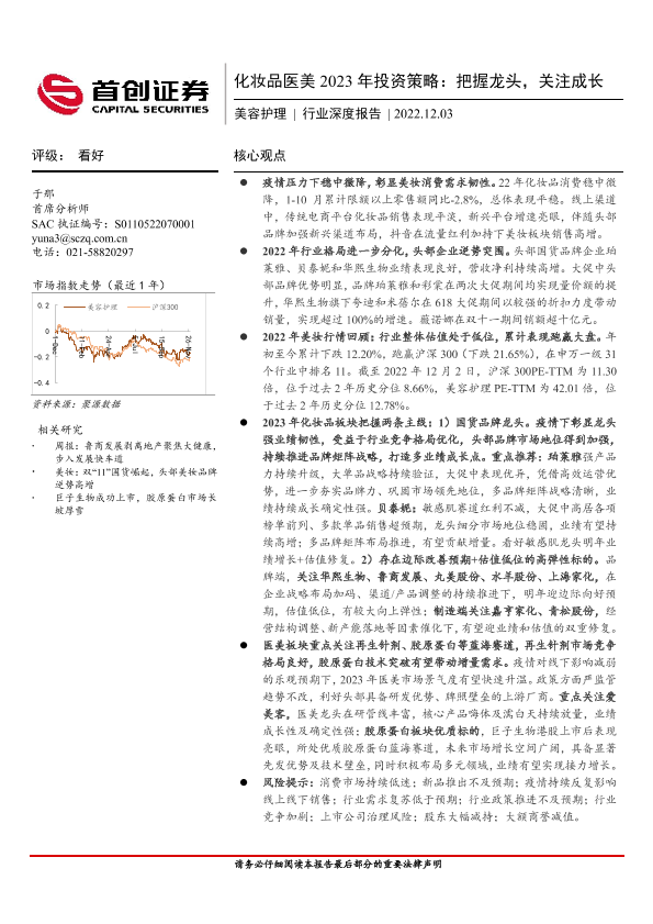 【首创证券】【20221203】化妆品医美2023年投资策略:把握龙头,关注成长-43页