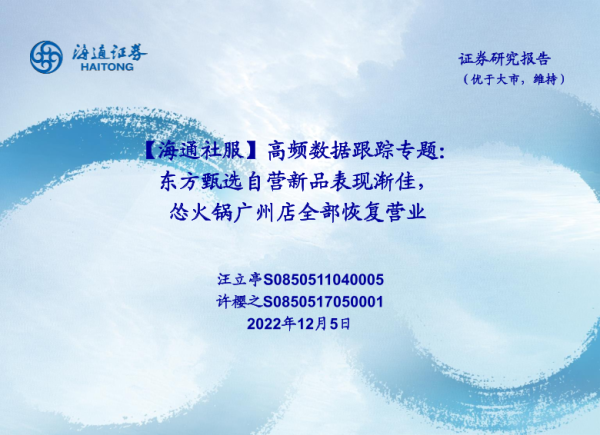 【海通证券】【20221205】高频数据跟踪专题:东方甄选自营新品表现渐佳,怂火锅广州店全部恢复营业-23页