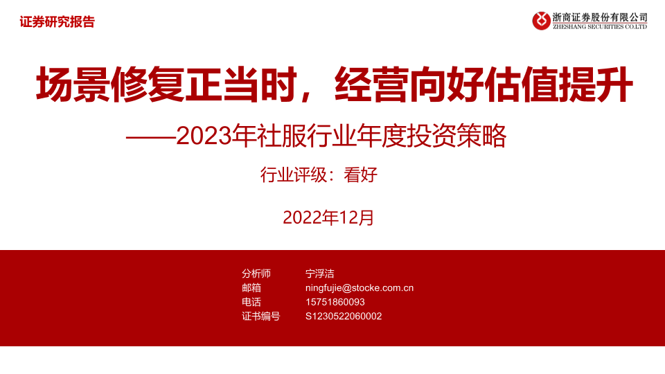 【浙商证券】【202212】2023年社服行业年度投资策略:场景修复正当时,经营向好估值提升-47页