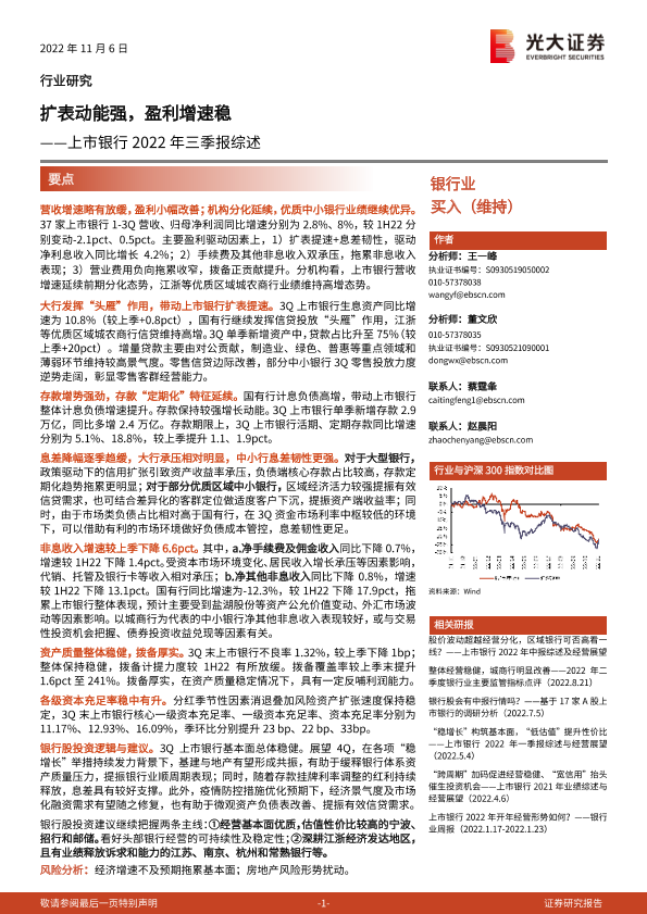 【光大证券】【20221106】银行业上市银行2022年三季报综述:扩表动能强,盈利增速稳-20页
