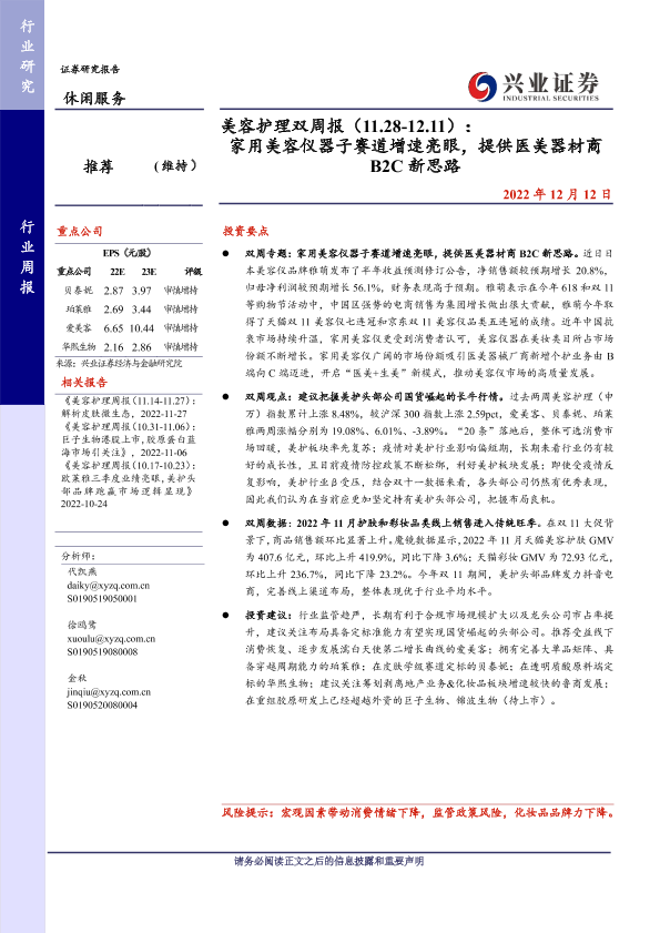 【兴业证券】【20221212】美容护理双周报:家用美容仪器子赛道增速亮眼,提供医美器材商B2C新思路-18页