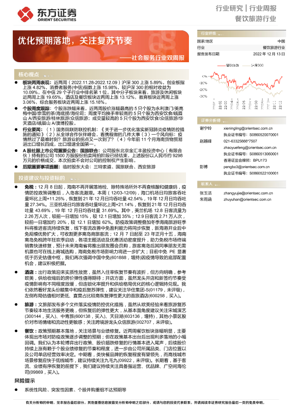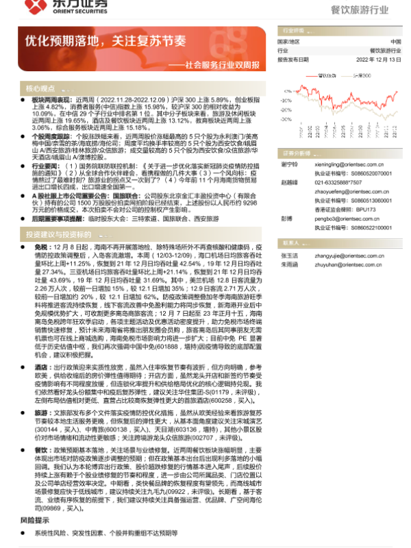 【东方证券】【20221213】社会服务行业双周报:优化预期落地,关注复苏节奏-10页