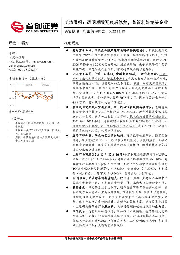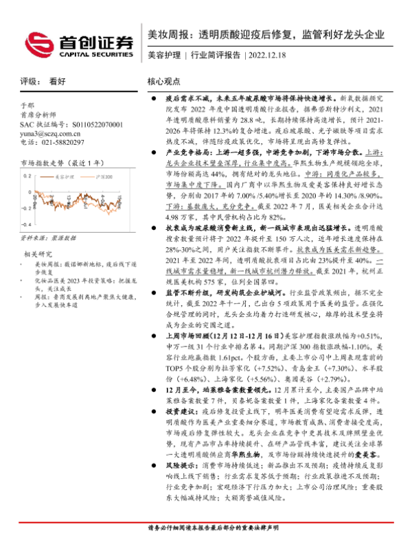 【首创证券】【20221218】美妆周报:透明质酸迎疫后修复,监管利好龙头企业-15页