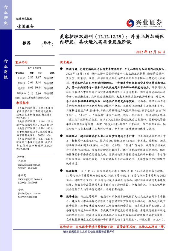 【兴业证券】【20221226】美容护理双周刊:外资品牌加码国内研发,美妆进入高质量发展阶段-16页