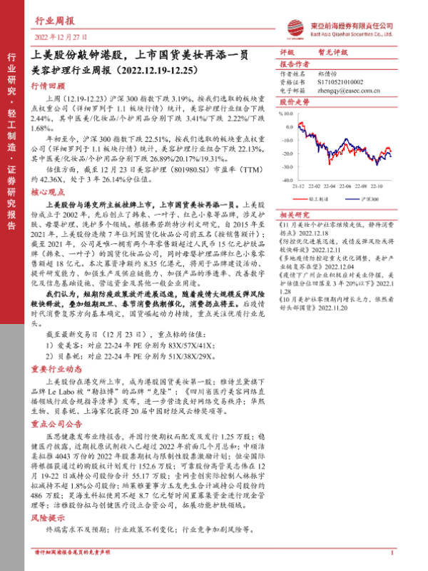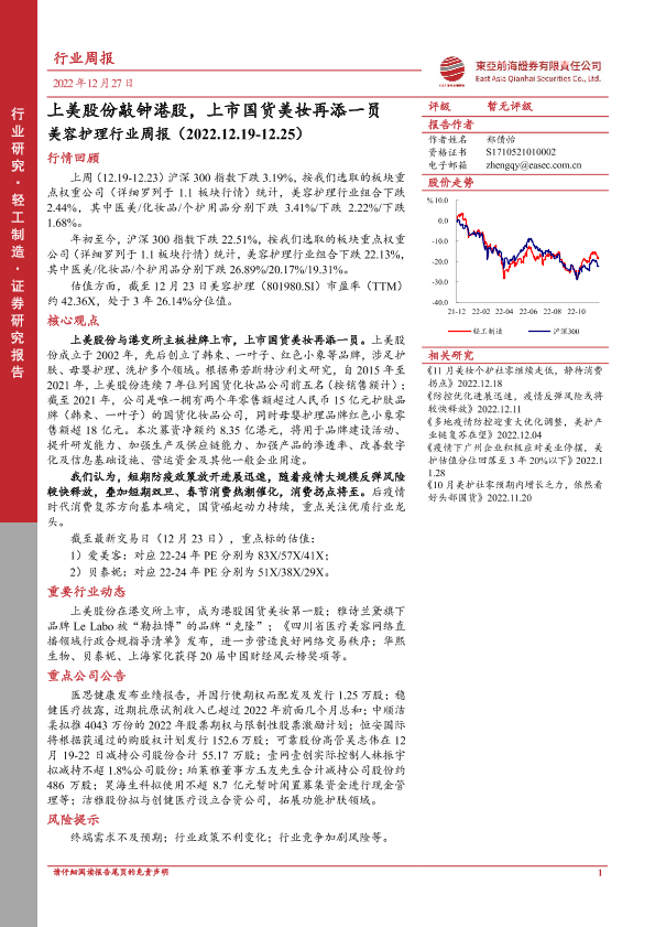 【东亚前海证券】【20221227】上美股份敲钟港股,上市国货美妆再添一员-11页