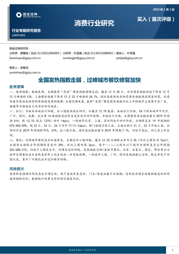 【国金证券】【20230101】全国发热指数走弱,过峰城市餐饮修复加快-10页