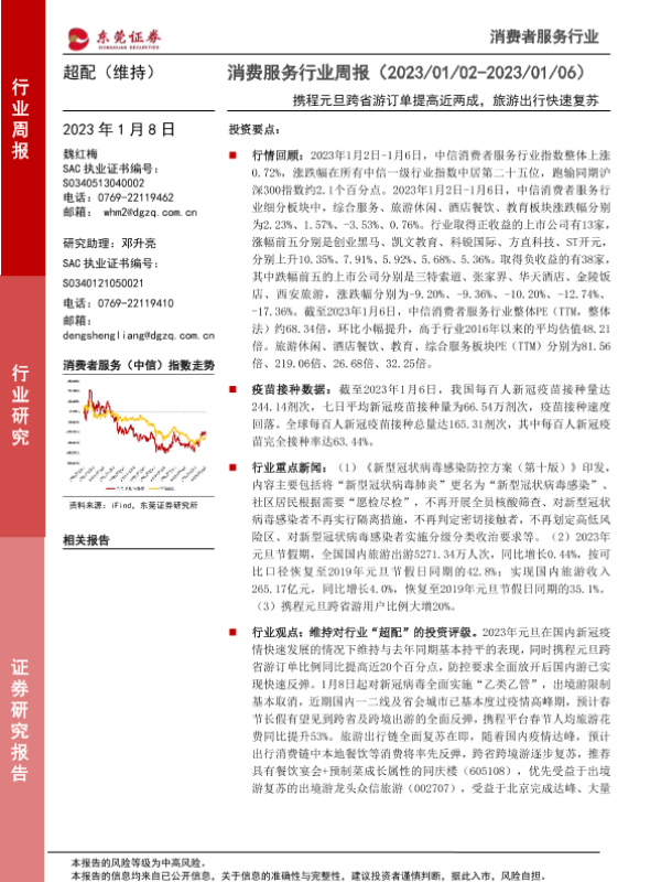 【东莞证券】【20230108】消费服务行业周报:携程元旦跨省游订单提高近两成,旅游出行快速复苏-11页