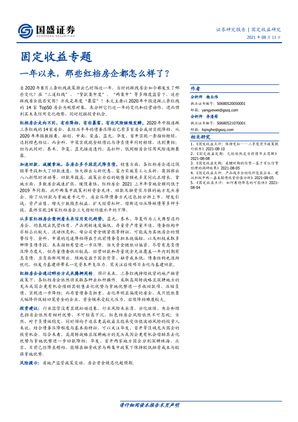【国盛证券】【20210811】固定收益专题:一年以来,那些红档房企都怎么样了?-30页