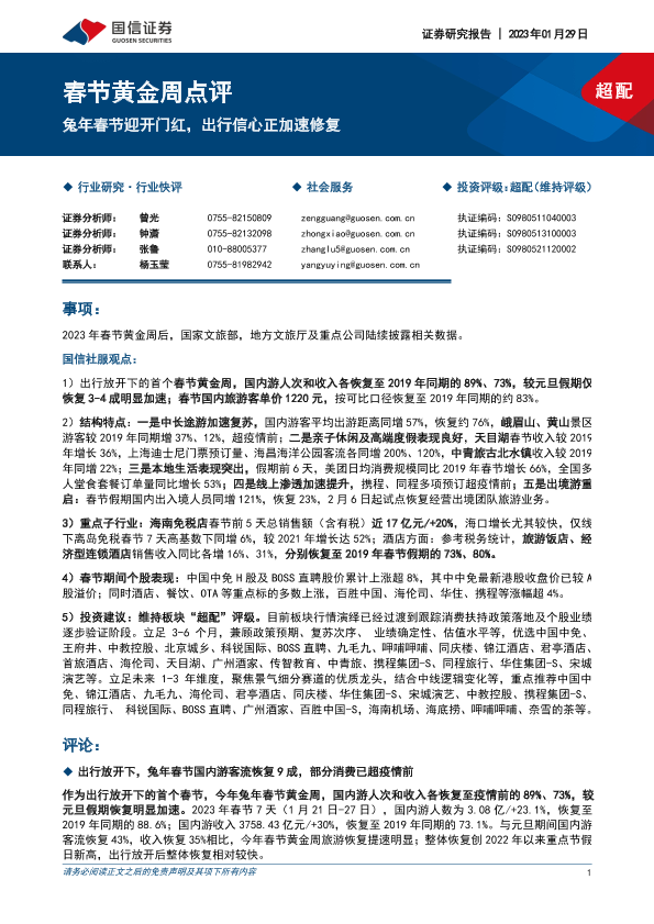 【国信证券】【20230129】社会服务:春节黄金周点评-兔年春节迎开门红,出行信心正加速修复-10页