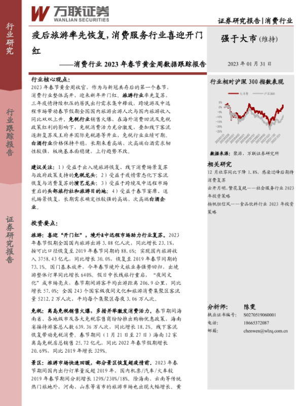 【万联证券】【20230131】消费行业2023年春节黄金周数据跟踪报告:疫后旅游率先恢复,消费服务行业喜迎开门红-10页