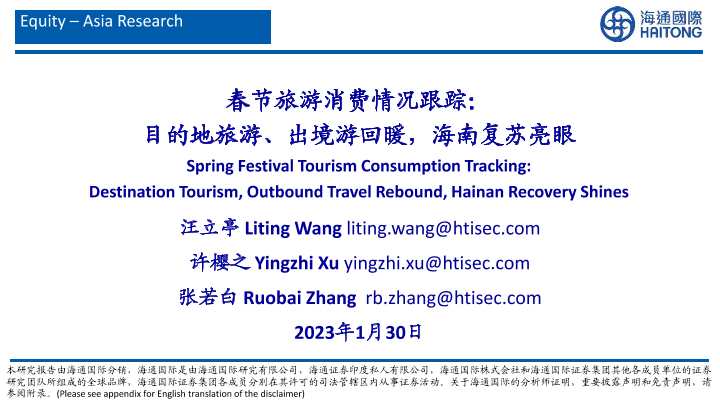 【海通国际】【20230130】春节旅游消费情况跟踪:目的地旅游、出境游回暖,海南复苏亮眼-32页