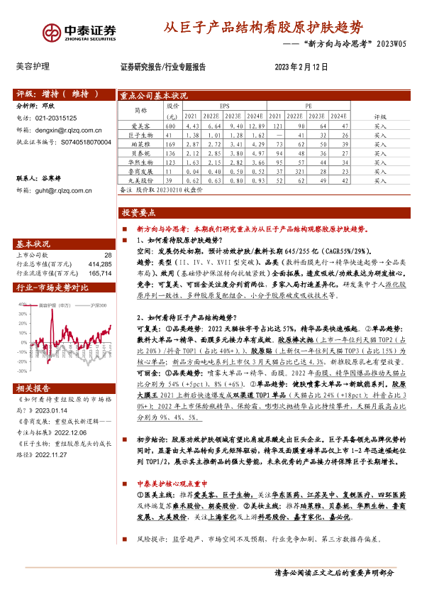 【中泰证券】【20230212】从巨子产品结构看胶原护肤趋势-17页