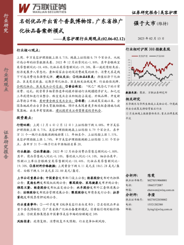 【万联证券】【20230213】美容护理行业周观点:名创优品开出首个香氛博物馆,广东省推广化妆品备案新模式-10页