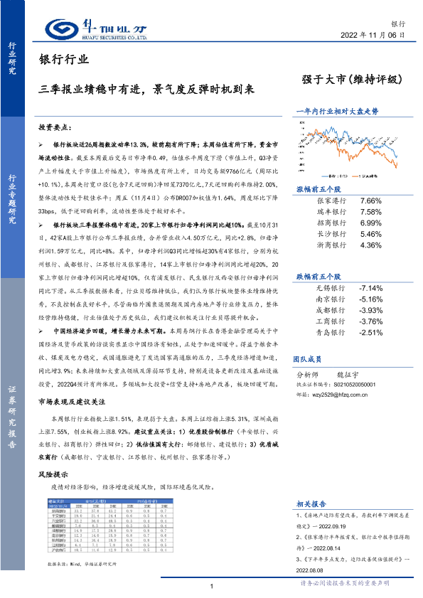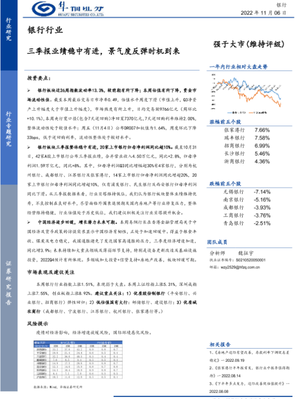 【华福证券】【20221106】银行行业:三季报业绩稳中有进,景气度反弹时机到来-17页