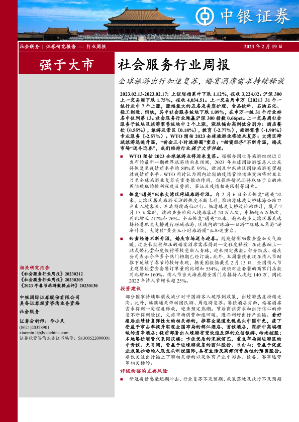 【中银证券】【20230219】社会服务行业周报:全球旅游出行加速复苏,婚宴酒席需求持续释放-21页