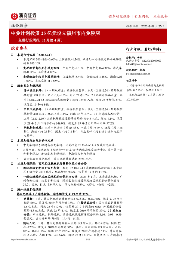 【浙商证券】【20230225】中免计划投资25亿元设立福州市内免税店-11页