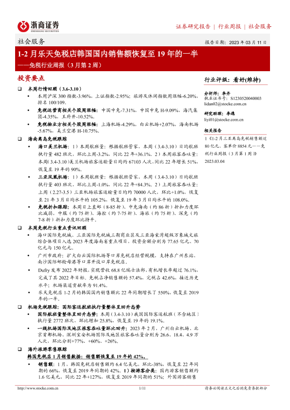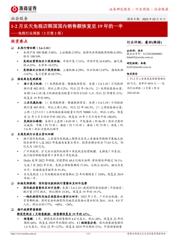 【浙商证券】【20230311】1-2月乐天免税店韩国国内销售额恢复至19年的一半-11页