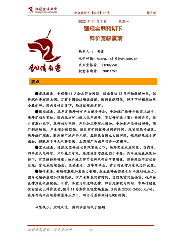 【铜冠金源期货】【20221107】锌月报:强现实弱预期下,锌价宽幅震荡-21页