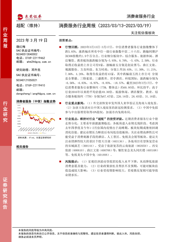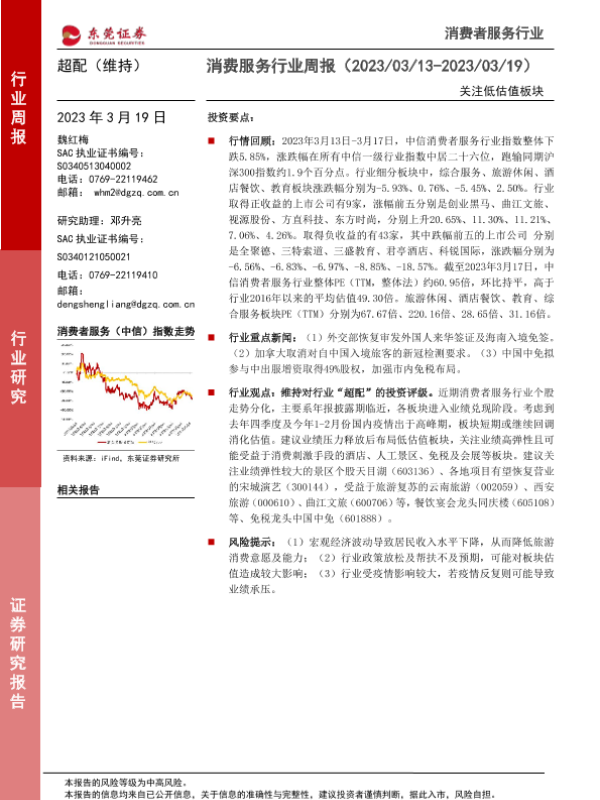 【东莞证券】【20230319】消费服务行业周报:关注低估值板块-10页