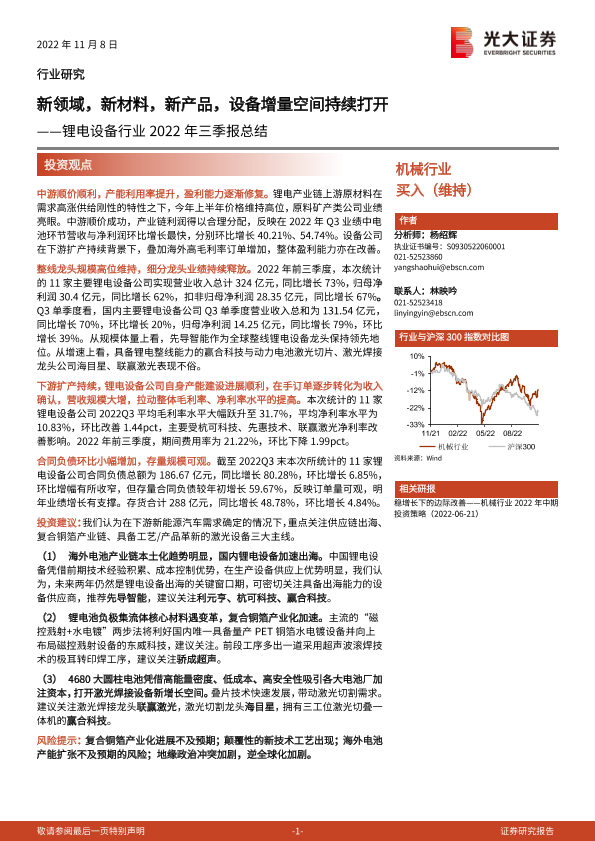 【光大证券】【20221108】锂电设备行业2022年三季报总结:新领域,新材料,新产品,设备增量空间持续打开-22页