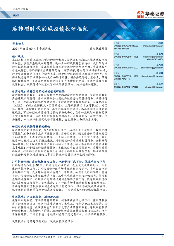 【华泰证券】【20210809】固定收益月报:后转型时代的城投债投研框架-23页