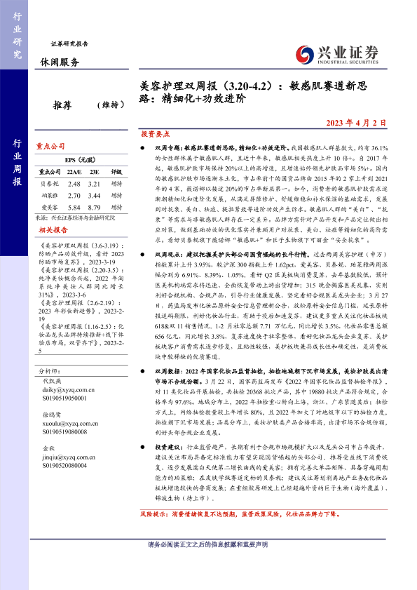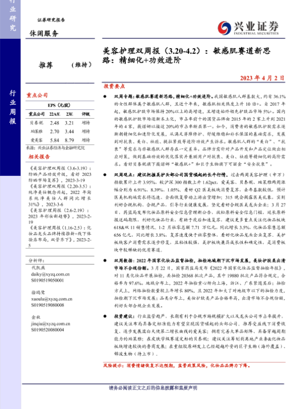 【兴业证券】【20230402】美容护理行业双周报:敏感肌赛道新思路,精细化+功效进阶-16页