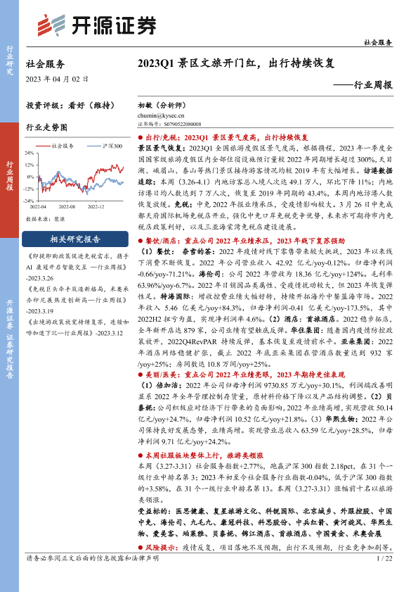 【开源证券】【20230402】2023Q1景区文旅开门红,出行持续恢复-22页
