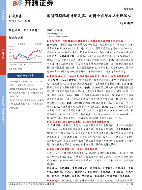 【开源证券】【20230409】社会服务行业周报:清明假期旅游持续复苏,消博会在即提振免税信心-20页