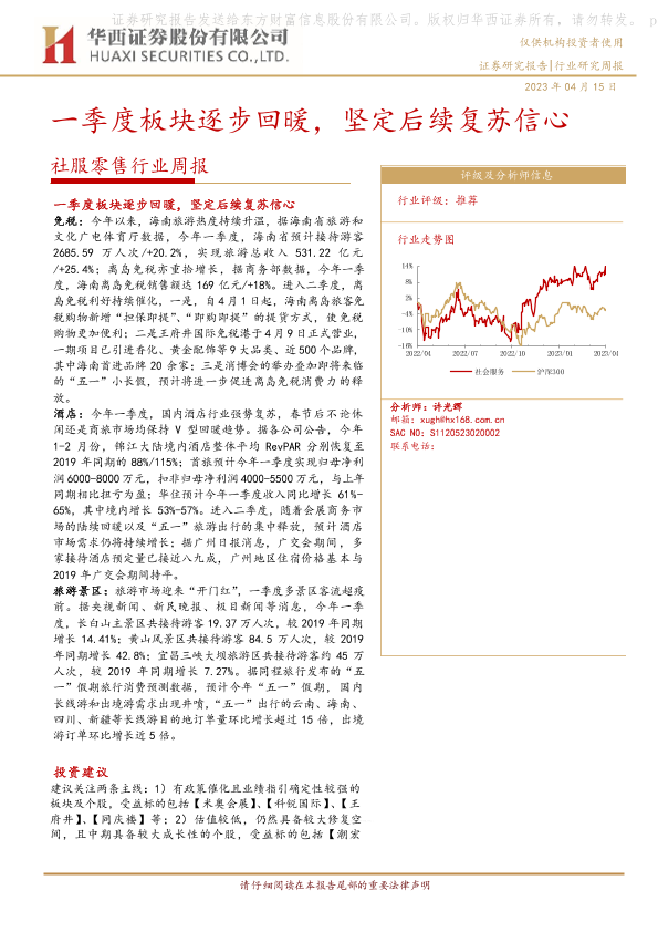 【华西证券】【20230415】一季度板块逐步回暖,坚定后续复苏信心-13页