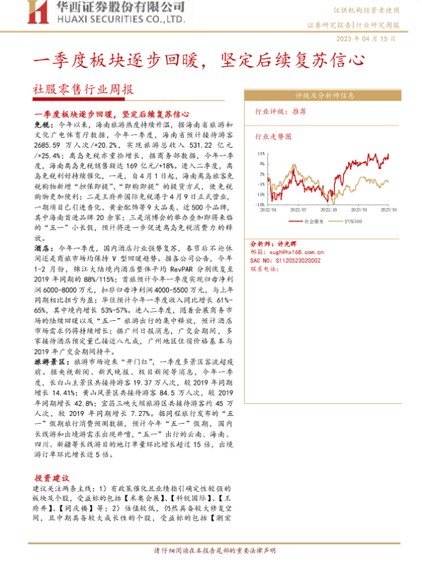 免税政策 旅游景区 消费复苏 社服零售 酒店行业