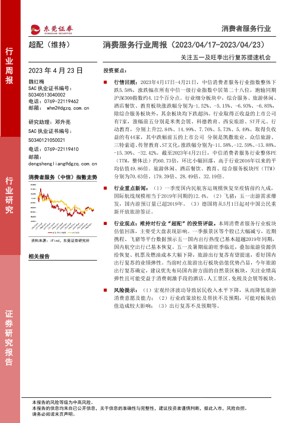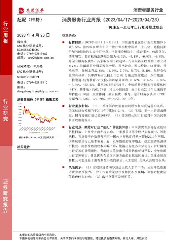 【东莞证券】【20230423】消费服务行业周报:关注五一及旺季出行复苏提速机会-10页