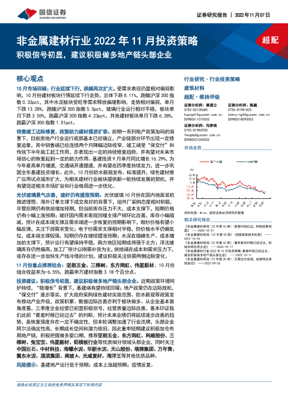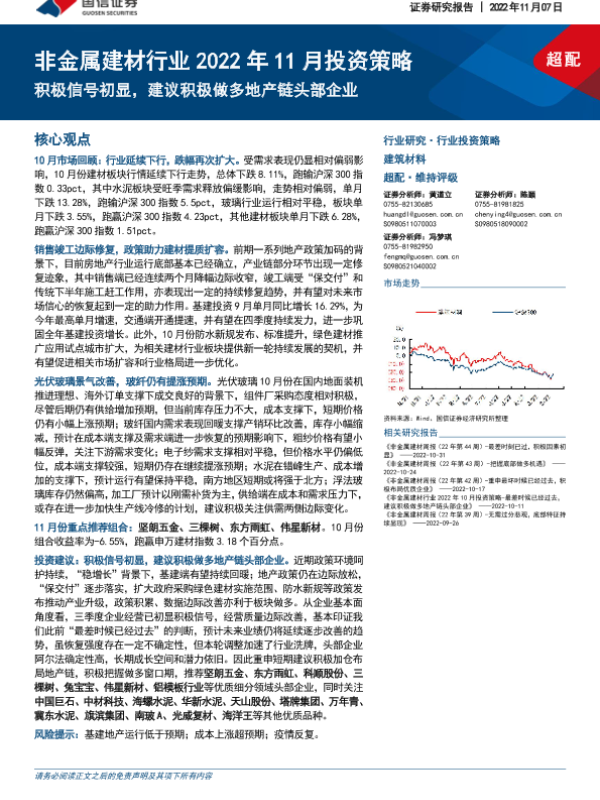 【国信证券】【20221107】非金属建材行业2022年11月投资策略:积极信号初显,建议积极做多地产链头部企业-32页