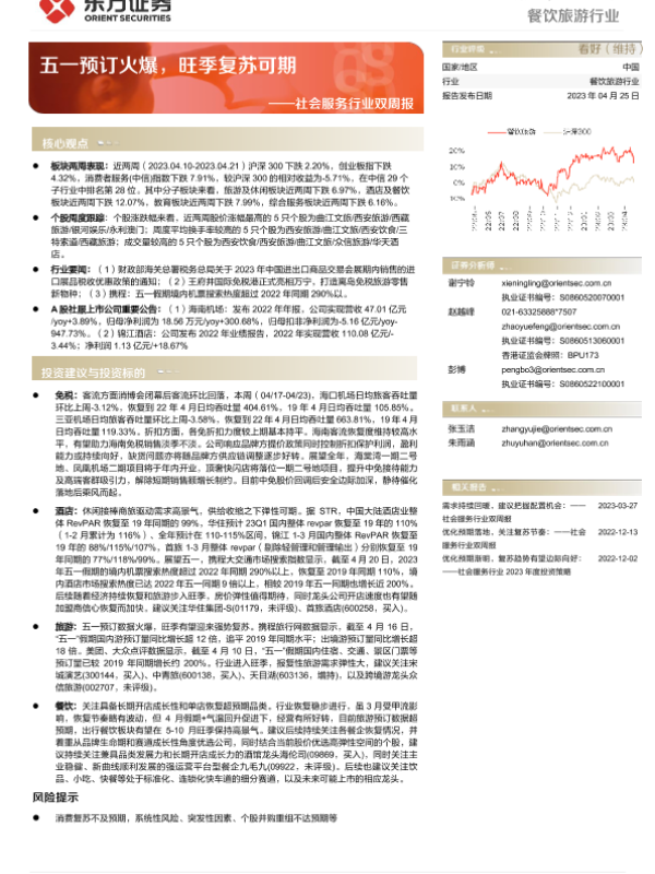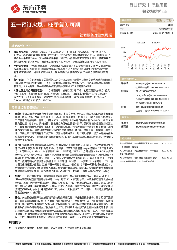 【东方证券】【20230425】社会服务行业双周报:五一预订火爆,旺季复苏可期-11页