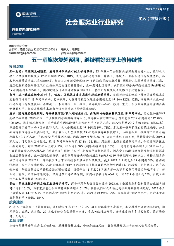 【国金证券】【20230503】五一酒旅恢复超预期,继续看好旺季上修持续性-11页