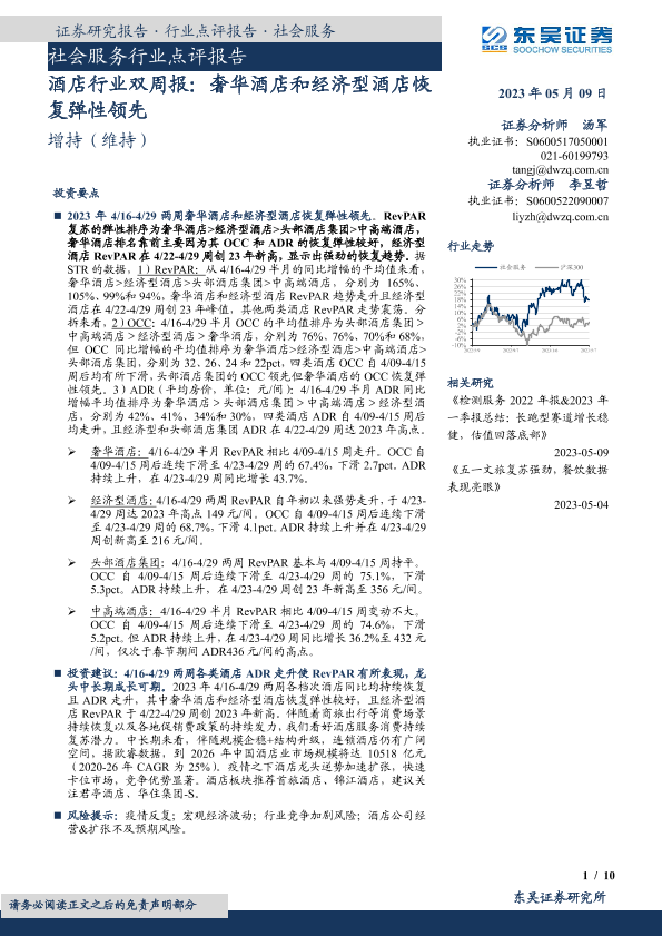 【东吴证券】【20230509】酒店行业双周报:奢华酒店和经济型酒店恢复弹性领先-10页