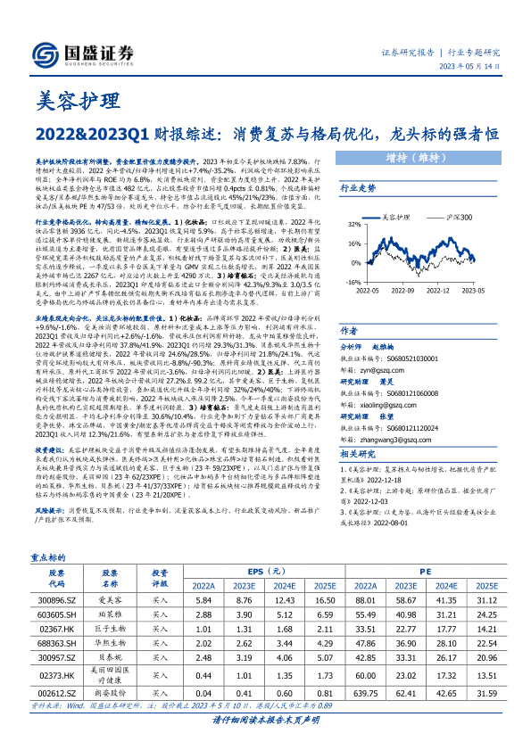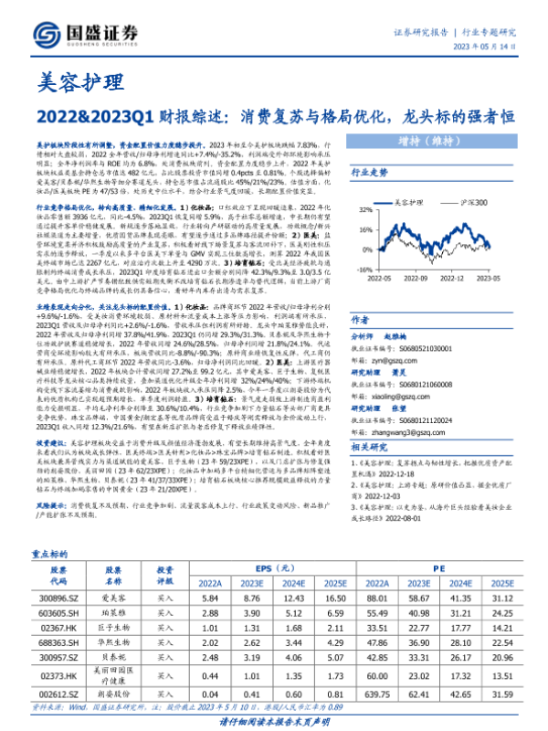 格局优化 消费复苏 美容护理 财报综述 龙头企业