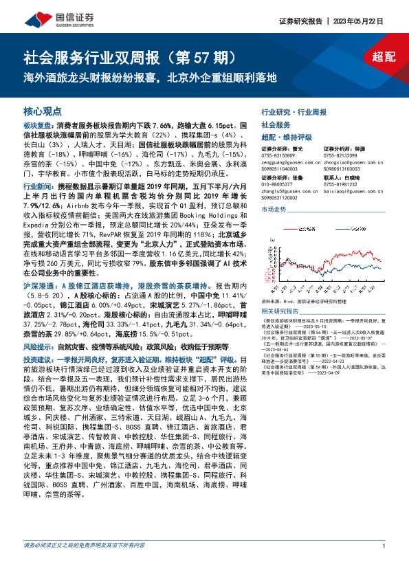 【国信证券】【20230522】社会服务行业双周报:海外酒旅龙头财报纷纷报喜,北京外企重组顺利落地-15页