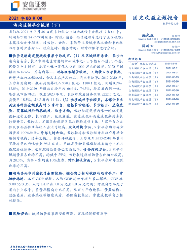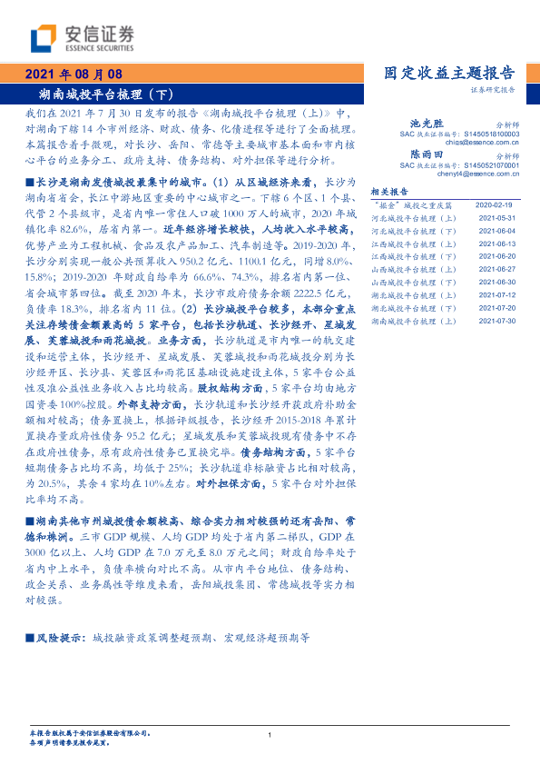 【安信证券】【20210808】固定收益主题报告:湖南城投平台梳理(下)-17页