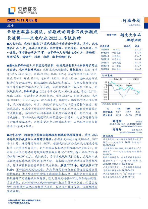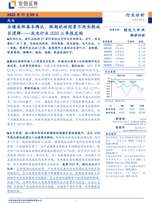 【安信证券】【20221109】风电行业2022三季报总结:业绩底部基本确认,短期扰动因素不改长期成长逻辑-16页