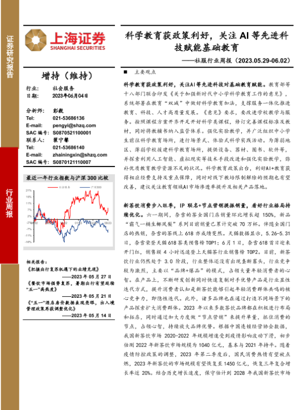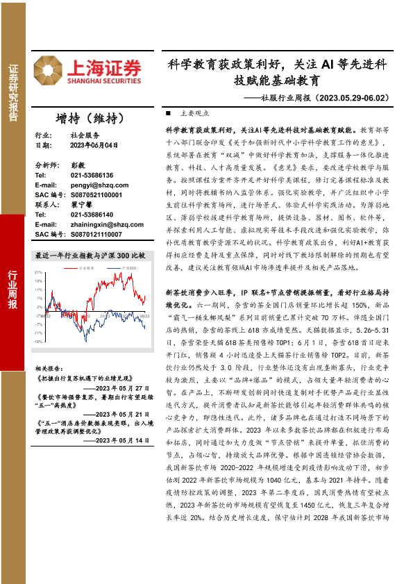 【上海证券】【20230604】社服行业周报:科学教育获政策利好,关注AI等先进科技赋能基础教育-12页
