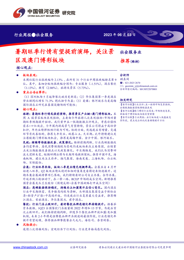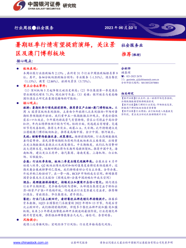 【银河证券】【20230603】暑期旺季行情有望提前演绎,关注景区及澳门博彩板块-14页
